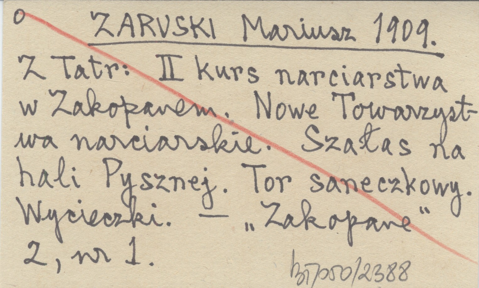 ZARUSKI Mariusz 1909 Z Tatr: II kurs narciarstwa w Zakopanem. Nowe Towarzystwa narciarskie. Szałas na hali Pysznej. Tor saneczkowy. Wycieczki.