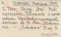 ZARUSKI Mariusz 1909 Z Tatr: ¦niegi. "Bob". Mali narciarze. Telemark i zwrot wstecz. Wycieczka nauczycieli sankami do M. Oka. Ostrzeżenia.