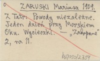 ZARUSKI Mariusz 1909 Z Tatr: Wypadek w górach. Akcya Tatrzańskiego ochotniczego pogotowia ratunkowego. Kradzież na Hali G±sienicowej.