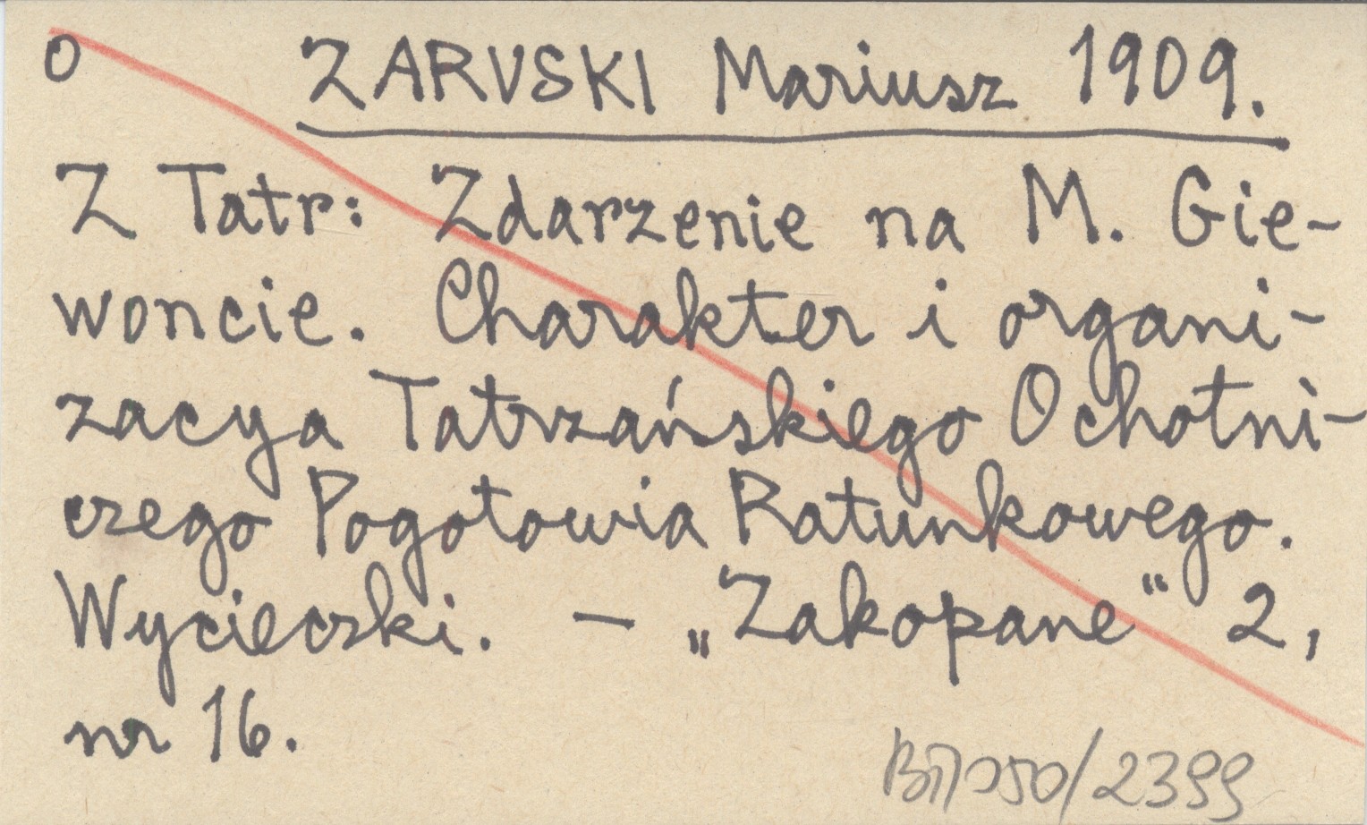 ZARUSKI Mariusz 1909 Z Tatr: Zdarzenie na M. Giewoncie. Charakter i organizacya Tatrzańskiego Ochotniczego Pogotowia Ratunkowego. Wycieczki.
