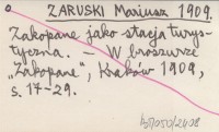 ZARUSKI Mariusz 1909 Zakopane jako stacja turystyczna.