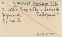 ZARUSKI Mariusz 1910 Z Tatr: Parę słów o lawinach. Wycieczki.