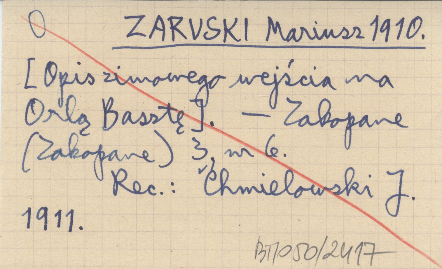 ZARUSKI Mariusz 1910 [Opis zimowego wejścia na Orlą Basztę.]