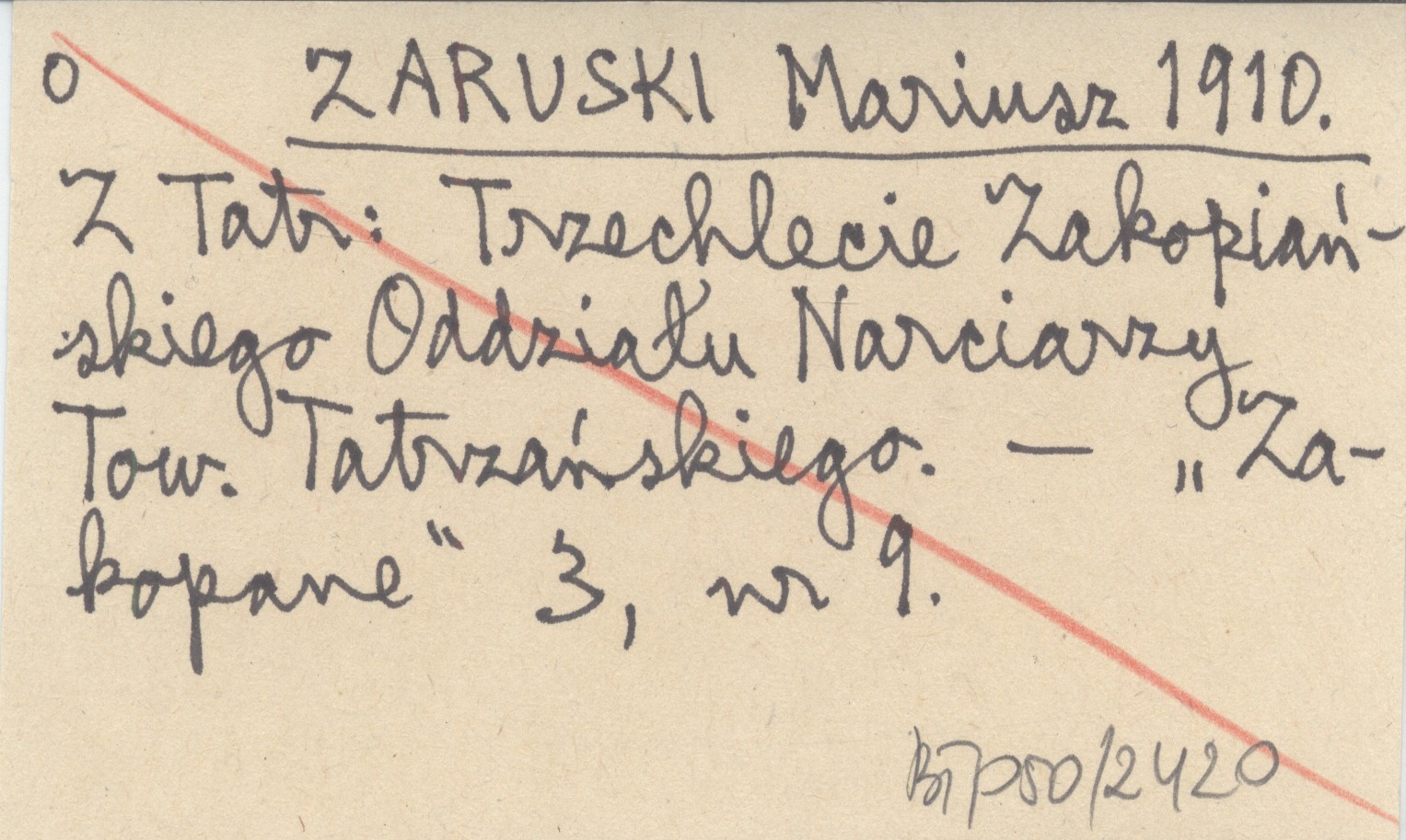 ZARUSKI Mariusz 1910 Z Tatr: Trzechlecie Zakopiańskiego Oddziału Narciarzy Tow. Tatrzańskiego.