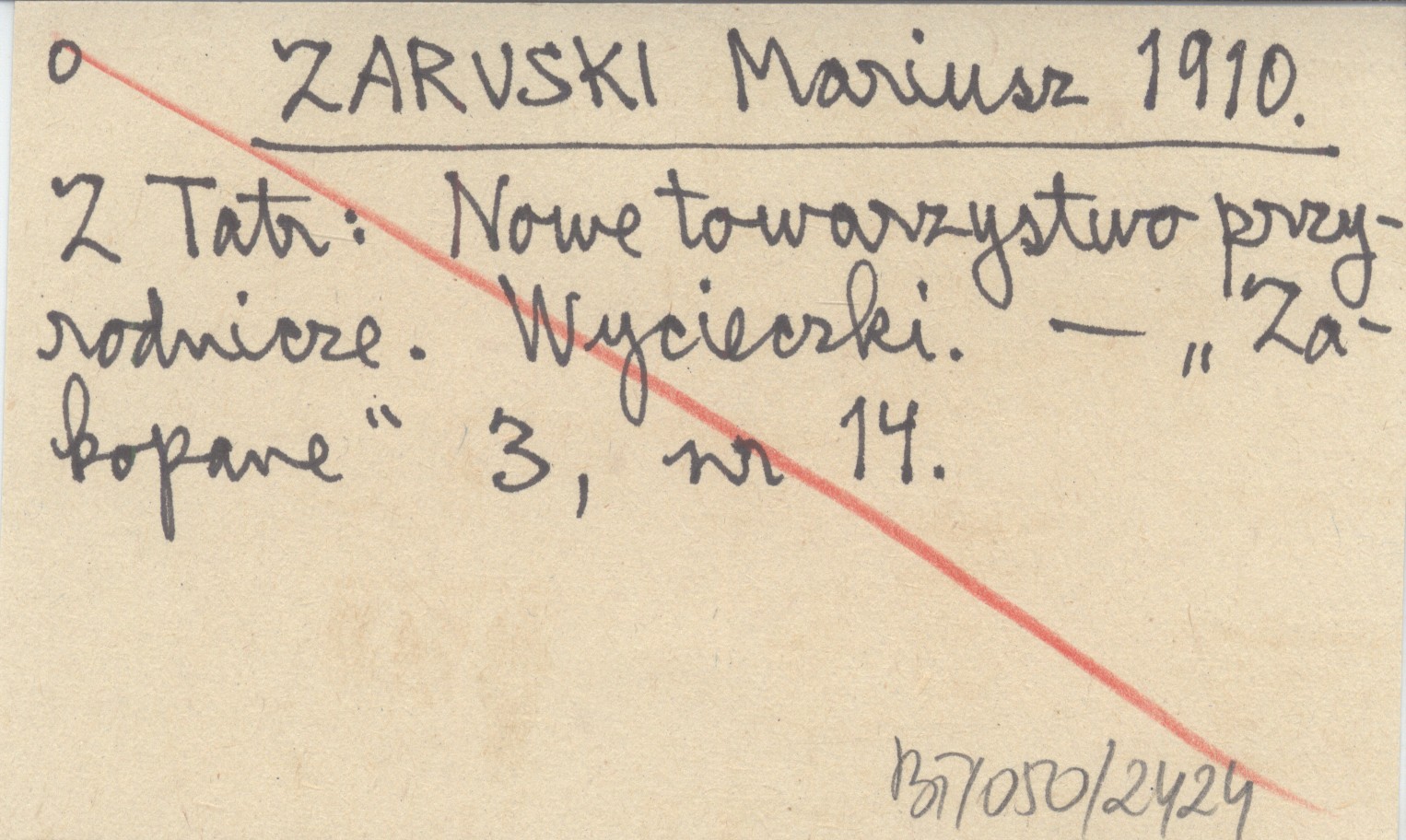 ZARUSKI Mariusz 1910 Z Tatr. Nowe towarzystwo przyrodnicze. Wycieczki.