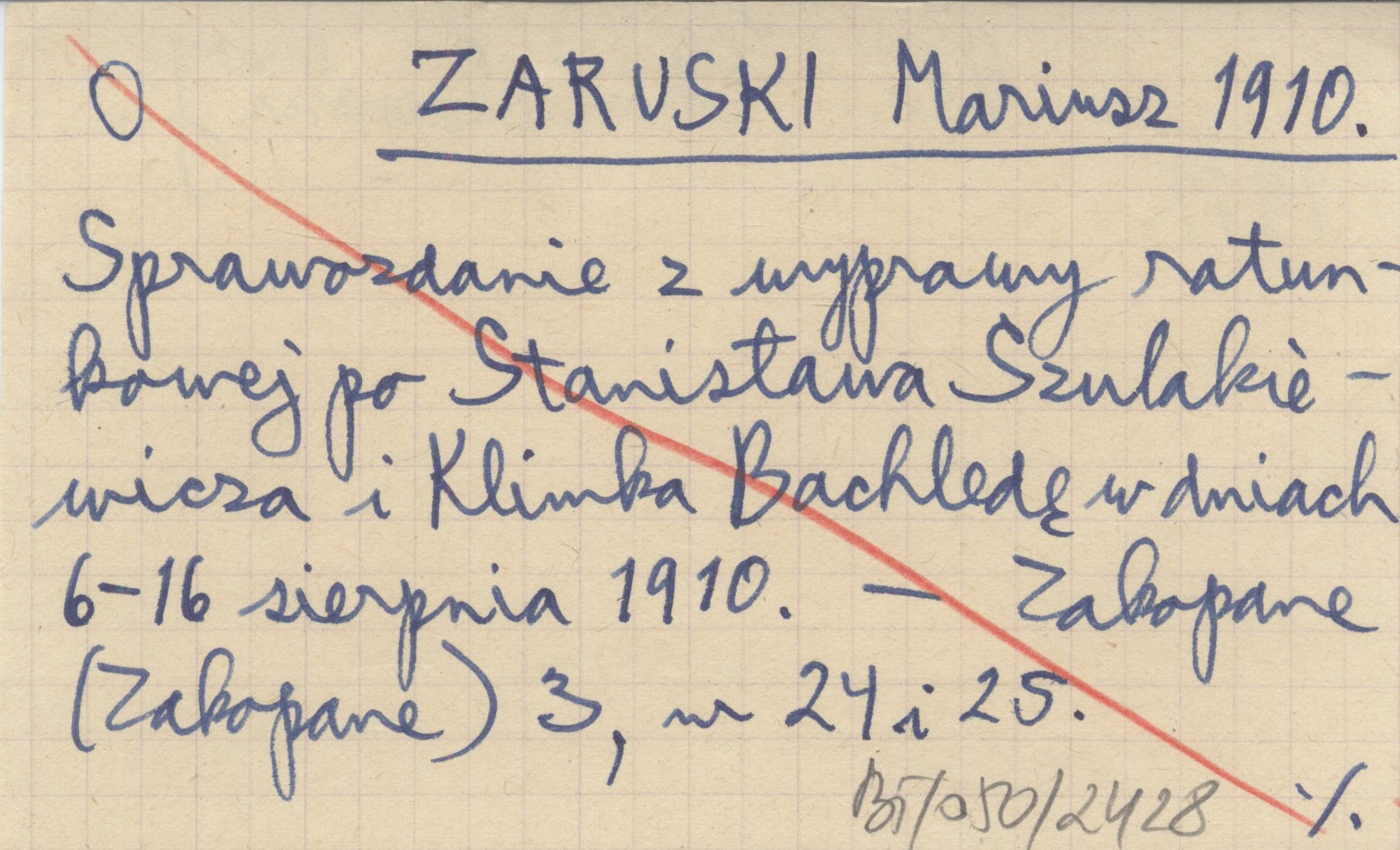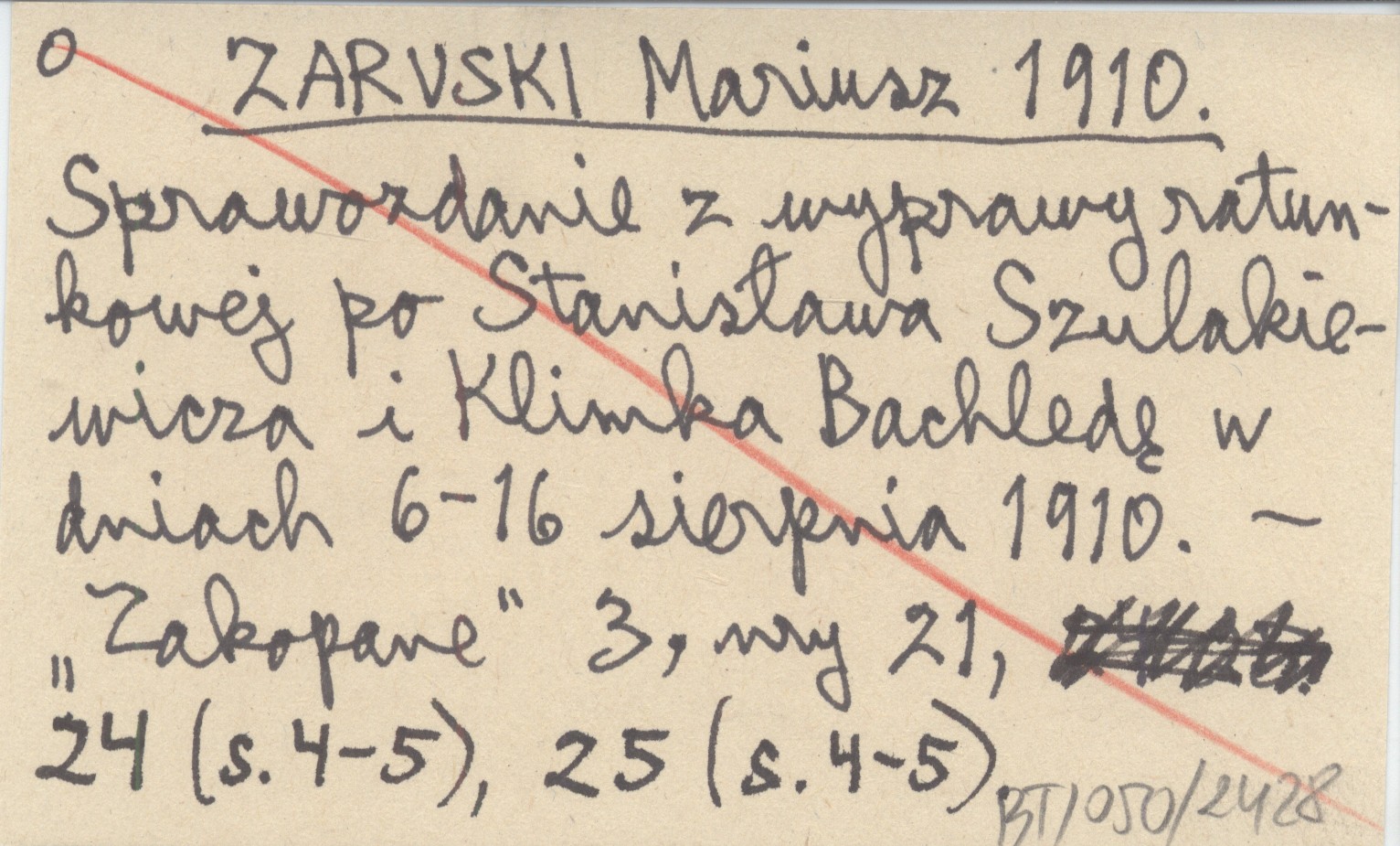 ZARUSKI Mariusz 1910 Sprawozdanie z wyprawy ratunkowej po Stanisława Szulakiewicza i Klimka Bachledę w dniach 6-16 sierpnia 1910.