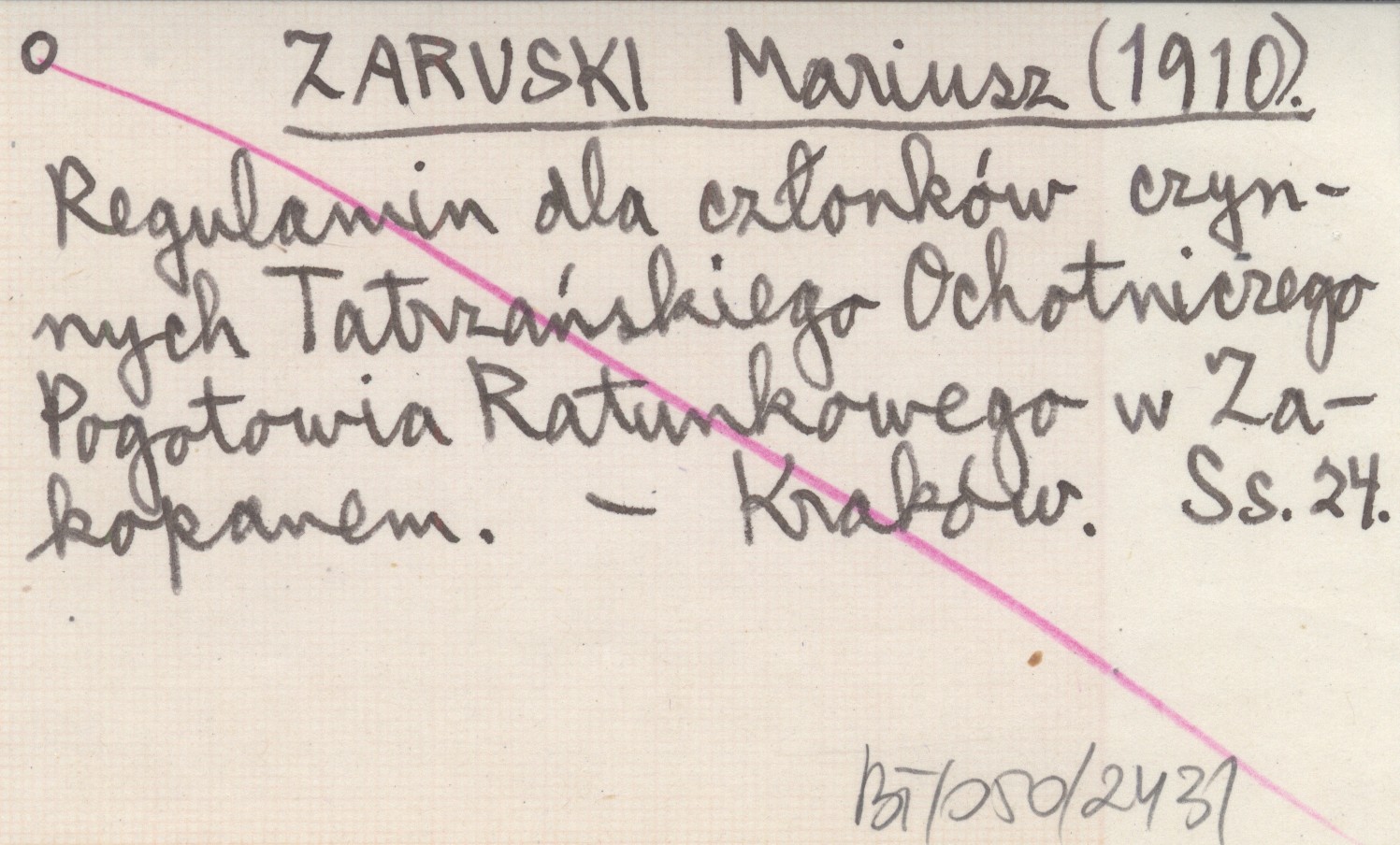 ZARUSKI Mariusz [1910] Regulamin dla członków czynnych Tatrzańskiego Ochotniczego Pogotowia Ratunkowego w Zakopanem.