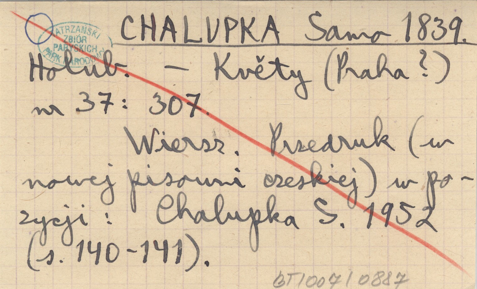 Květy (Praha?) , Nr 37: 307. Wiersz. Przedruk (w nowej pisowni czeskiej) w pozycji: CHALUPKA S. 1952: 140-141.