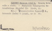 Pamiętnik Towarzystwa Tatrzańskiego (Kraków) , 33: 59-64, il. REC: [KLEMENSIEWICZ Zygmunt] E., Taternik (Lwów) 6 (1912), nr 5: 87.