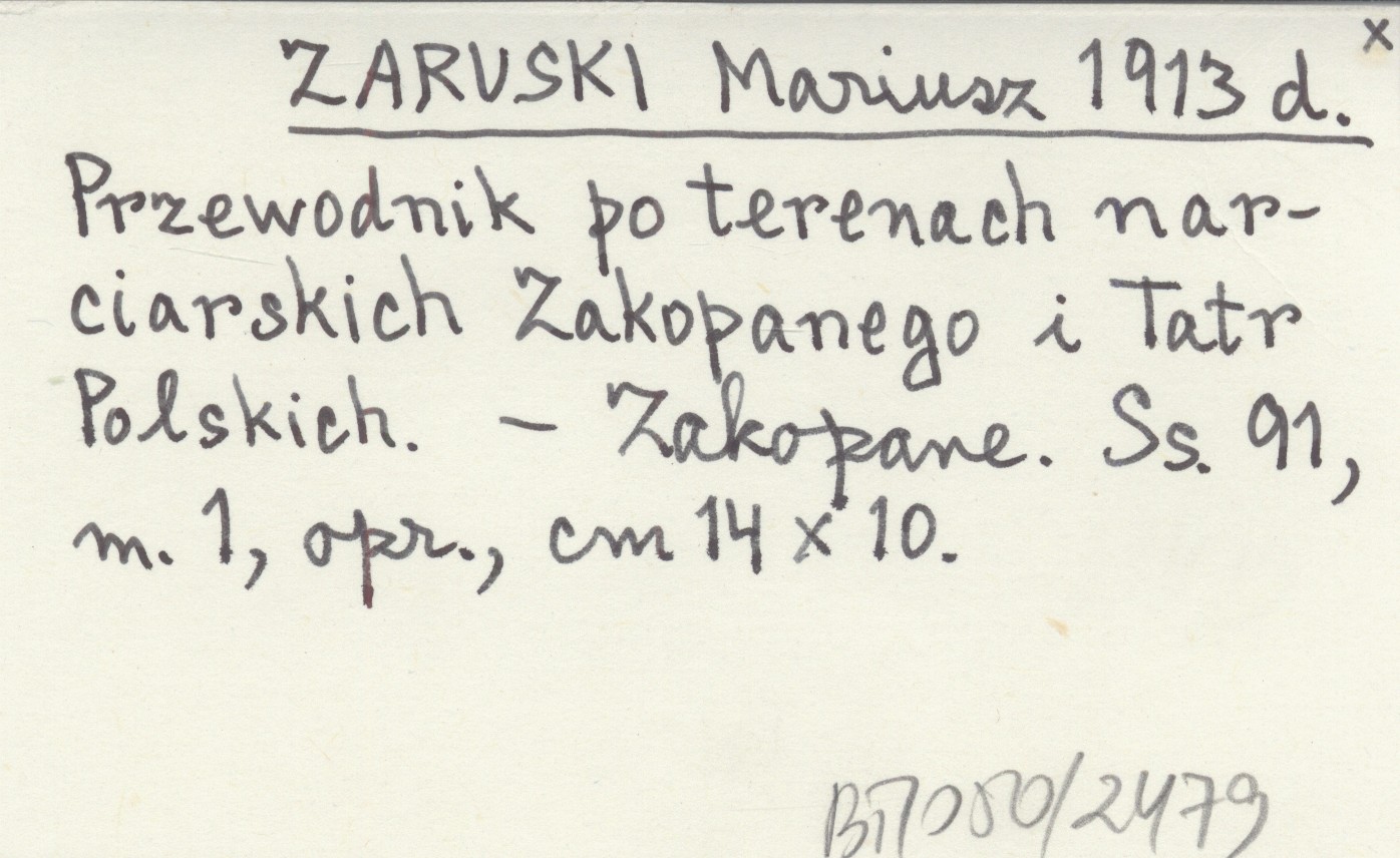 ZARUSKI Mariusz 1913 d Przewodnik po terenach narciarskich Zakopanego i Tatr Polskich.