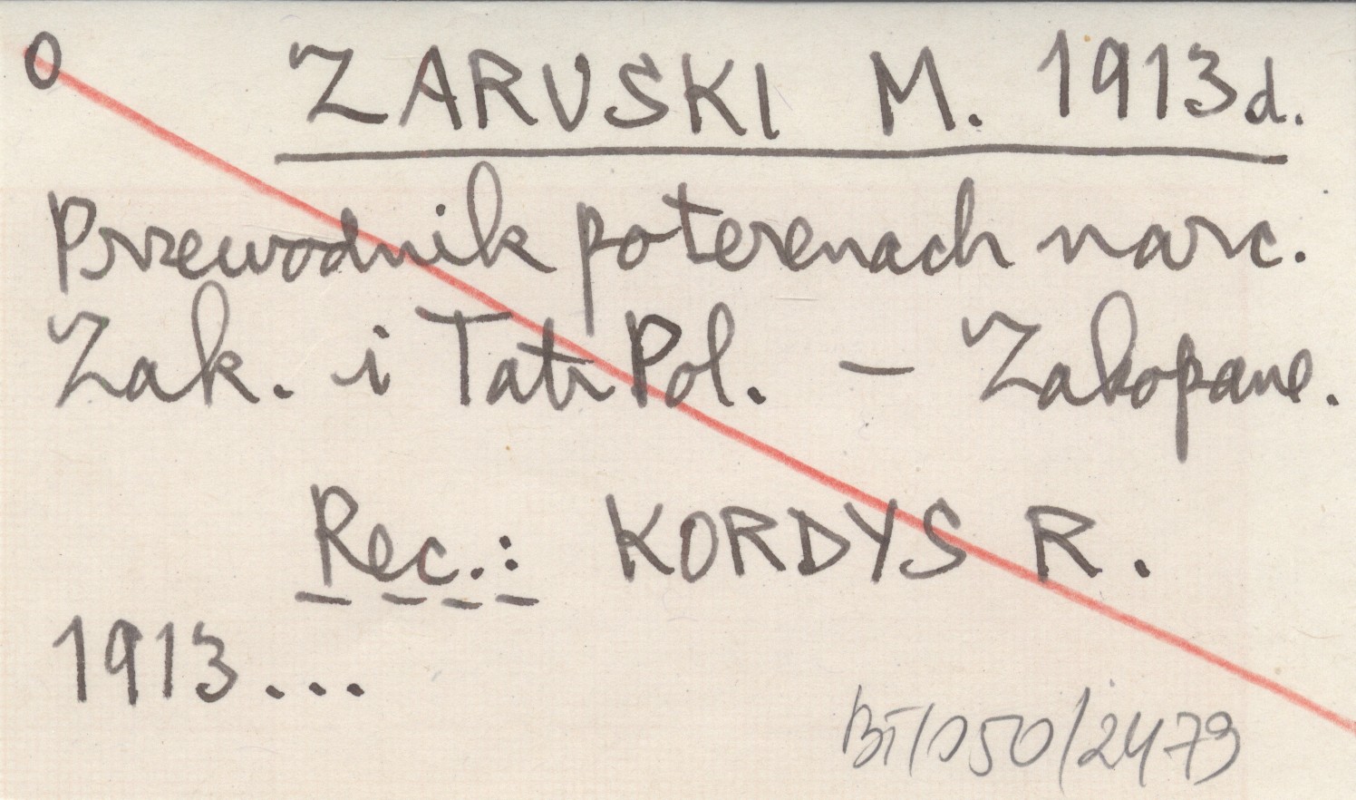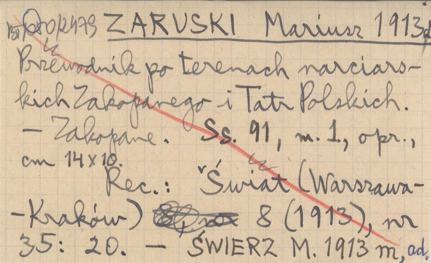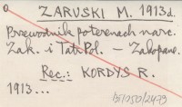 Zakopane , 91 s., 1 mapa, opr., 14x10 cm. REC: KORDYS R. 1913... ; Świat (Warszawa, Kraków) 8 (1913), nr 35: 20 ; ŚWIERZ M. 1913 m, ad ;