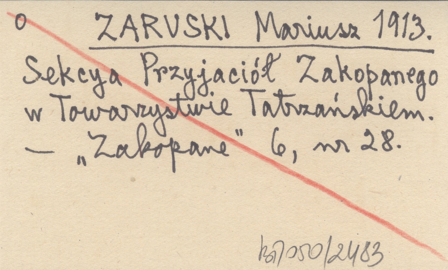 ZARUSKI Mariusz 1913 Sekcya Przyjaciół Zakopanego w Towarzystwie Tatrzańskiem.
