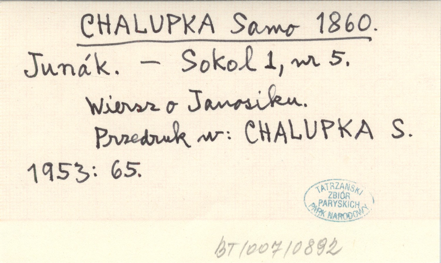 Sokol, 1, nr 5. Wiersz o Janosiku. Przedruk w: CHALUPKA S. 1953: 65.
