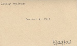 Warszawa , VIII, 179 s., il., okł. (il.), 22x15 cm. Wydanie to (pierwsze) wyszło z dwiema różnymi okładkami (z inną ilustracja). Przedmowę napisał Mieczysław Orłowicz. REC: Przegląd Bibliograficzny 9 (1923), nr 4: 65 ; PARYSKI W. H. 1948: 18 ;
