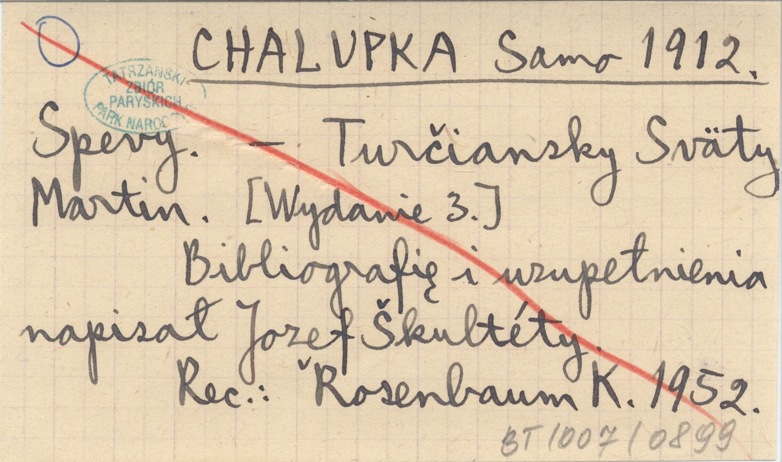 WYD: 3 Turčiansky Sväty Martin , Bibliografię i uzupełnienia napisał Józef Škultéty. REC: ROSENBAUM K. 1952