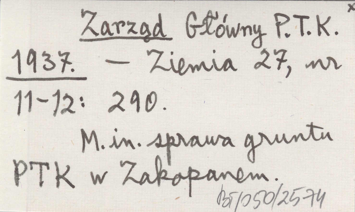 Ziemia, 27, nr 11-12: 290. M. in. sprawa gruntu PTK w Zakopanem.