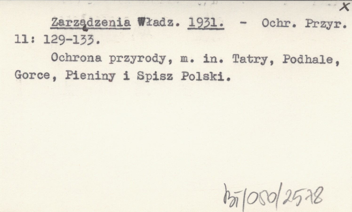 Ochrona Przyrody, 11: 129-133. Ochrona przyrody, m. in. Tatry, Podhale, Gorce, Pieniny i Spisz Polski.