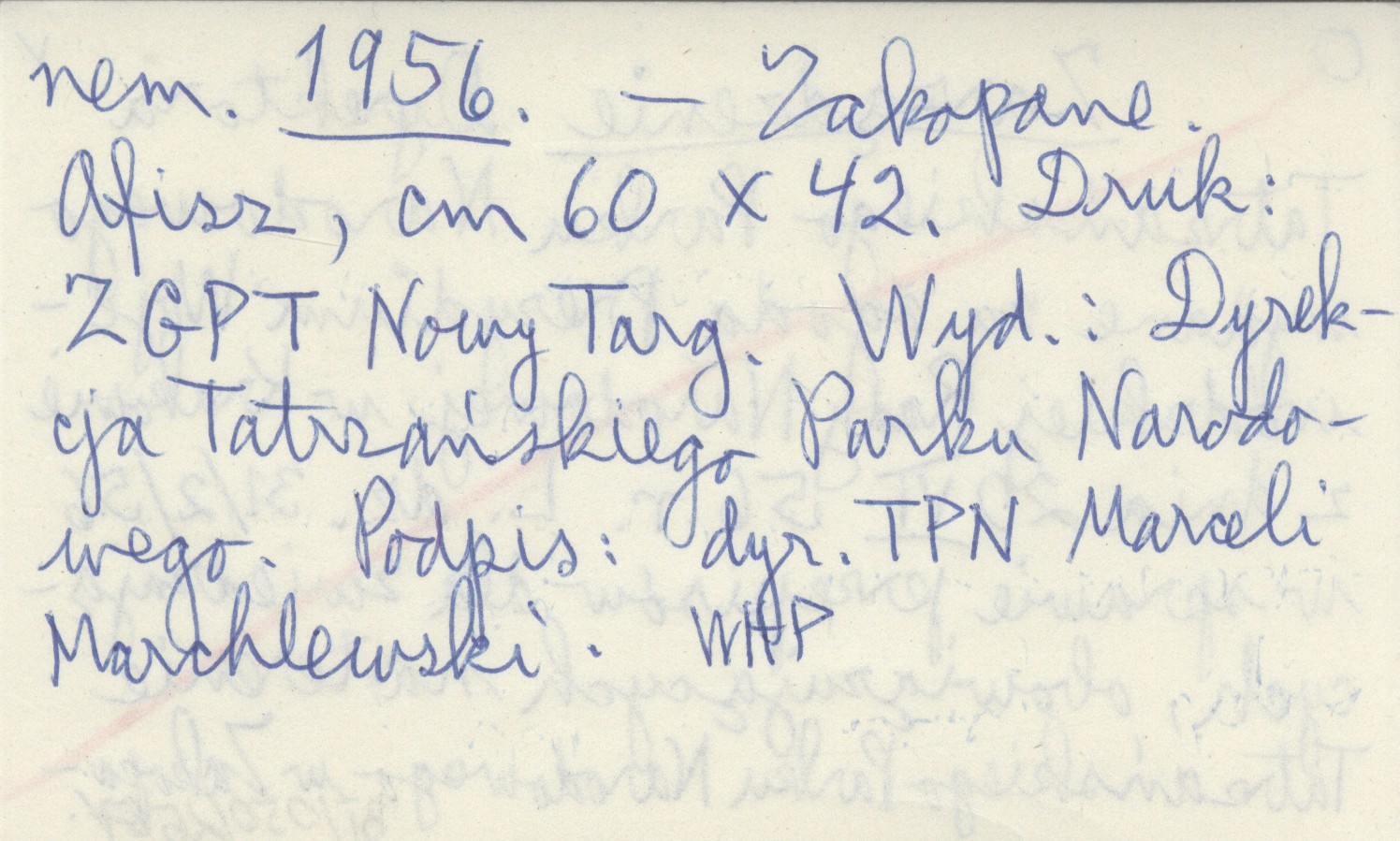 Dyrekcja Tatrzańskiego Parku Narodowego, Zakopane , 60x42 cm. Afisz. Podpis: dyr. TPN Marceli Marchlewski. Druk: ZGPT Nowy Targ.