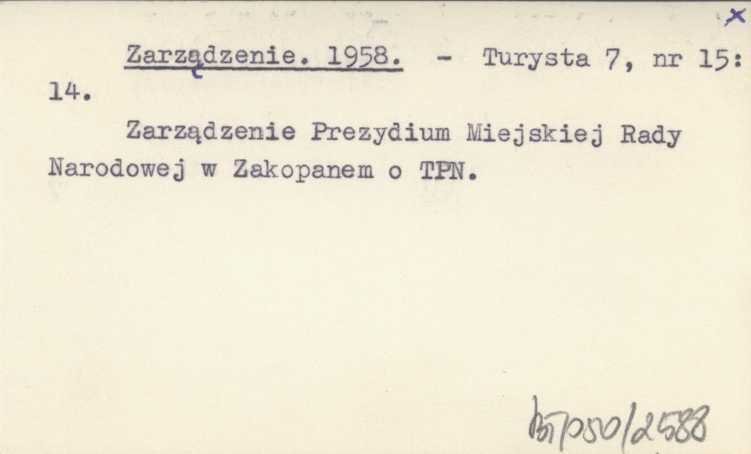 Turysta, 7, nr 15: 14. Zarządzenie Prezydium Miejskiej Rady Narodowej w Zakopanem o TPN.