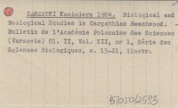 ZARZYCKI Kazimierz 1964 Biological and Ecological Studies in Carpathian Beechwood.