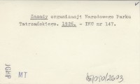 Zasady organizacji Narodowego Parku Tatrzańskiego. 1926