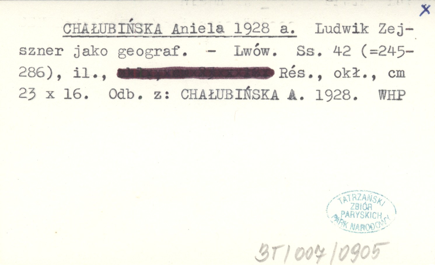CHAŁUBIŃSKA Aniela 1928 a Ludwik Zejszner jako geograf.