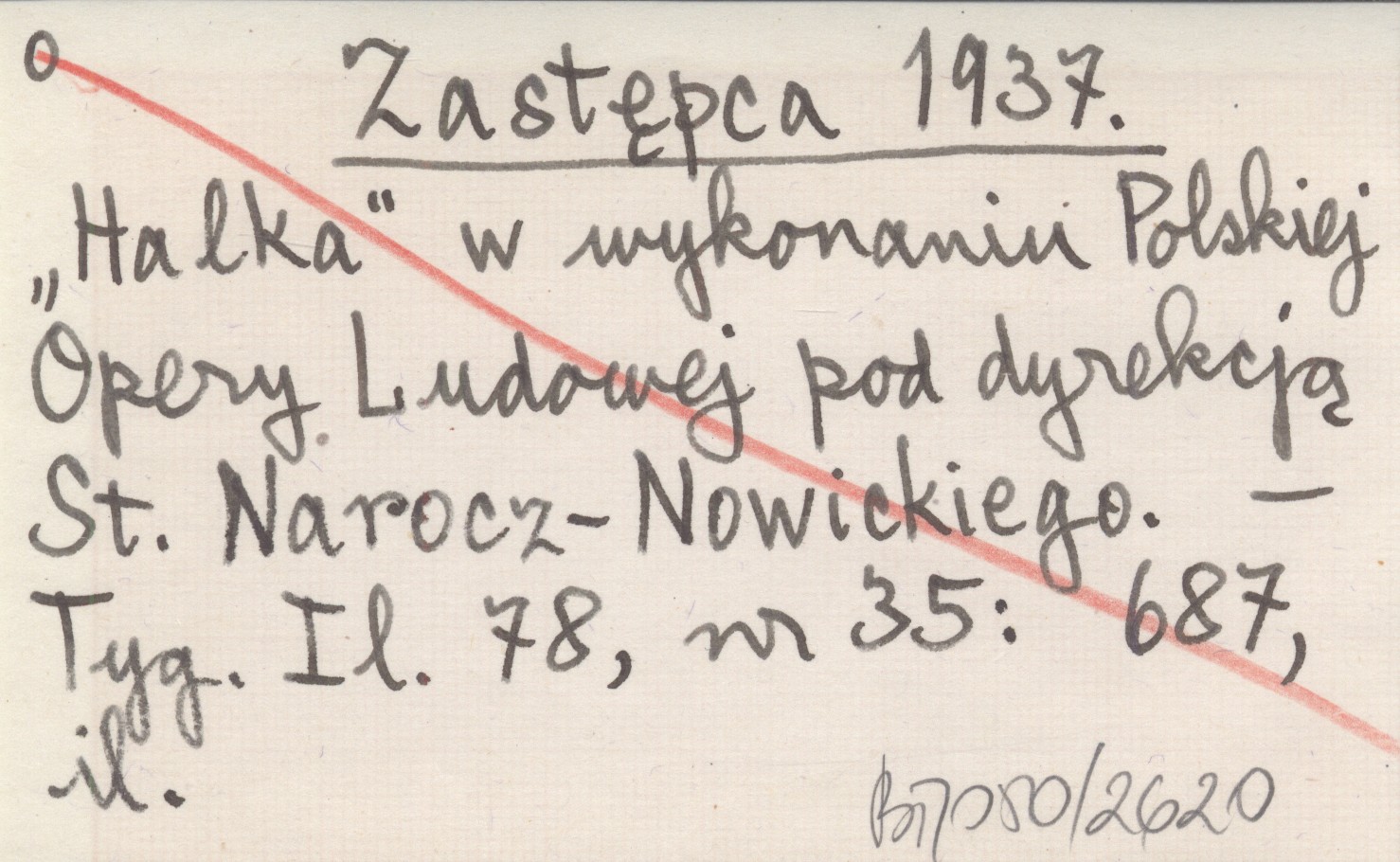Zastępca 1937 "Halka" w wykonaniu Polskiej Opery Ludowej pod dyrekcją St. Narocz-Nowickiego.