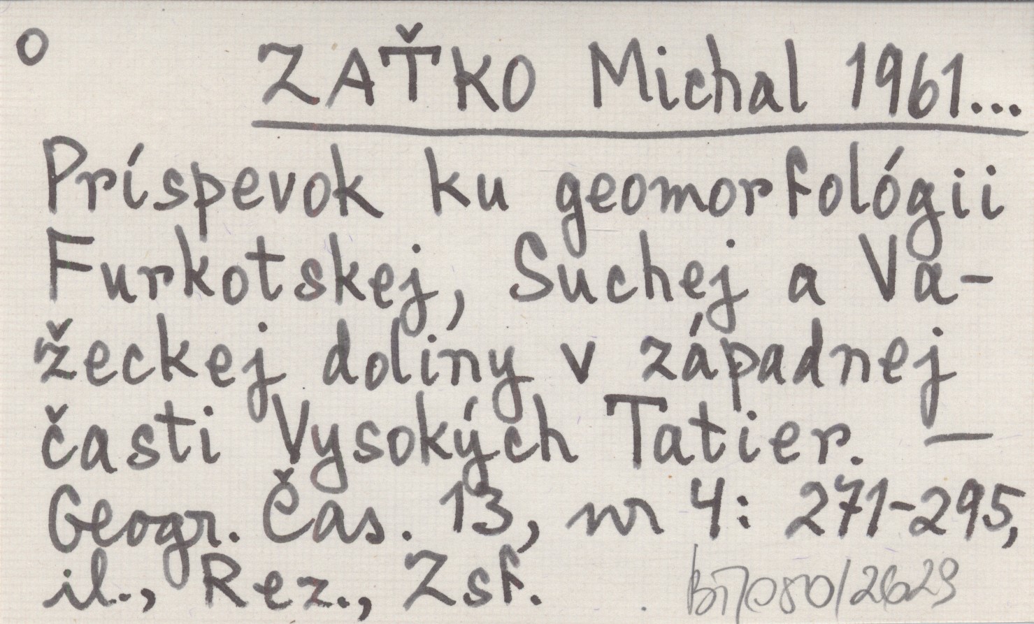 ZA«KO Michal 1961... Príspevok ku geomorfológii Furkotskej, Suchej a VaŸeckej doliny v západnej èasti Vysokęch Tatier.