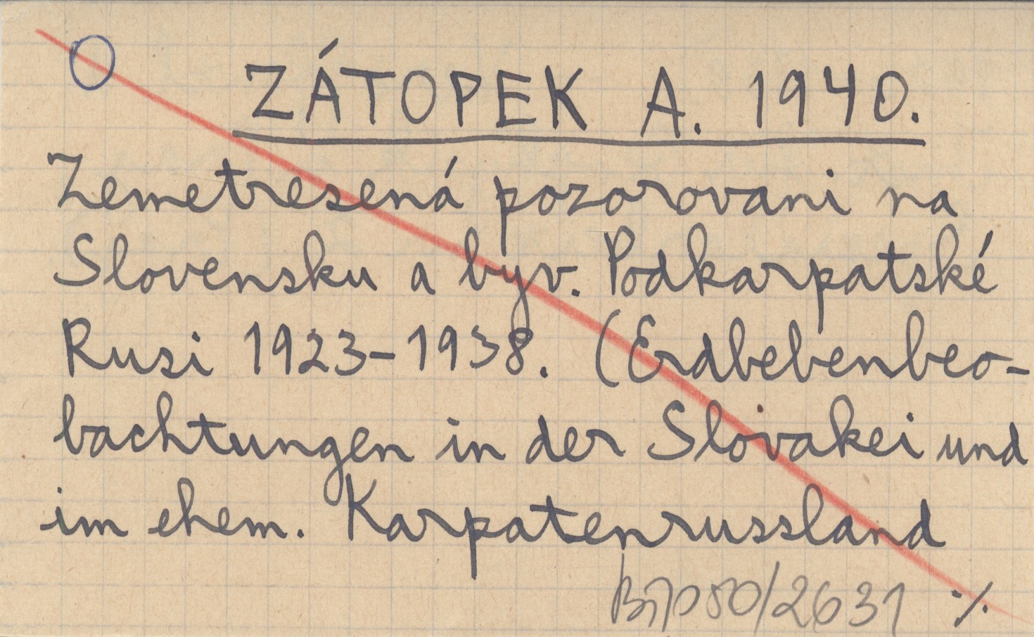 ZÁTOPEK A. 1940 Zemetresená pozorovani na Slovensku a byv. Podkarpatské Rusi 1923-1938. (Edbebenbeobachtungen in der Slovakei und im ehem. Karpatenrussland 1923-1938).