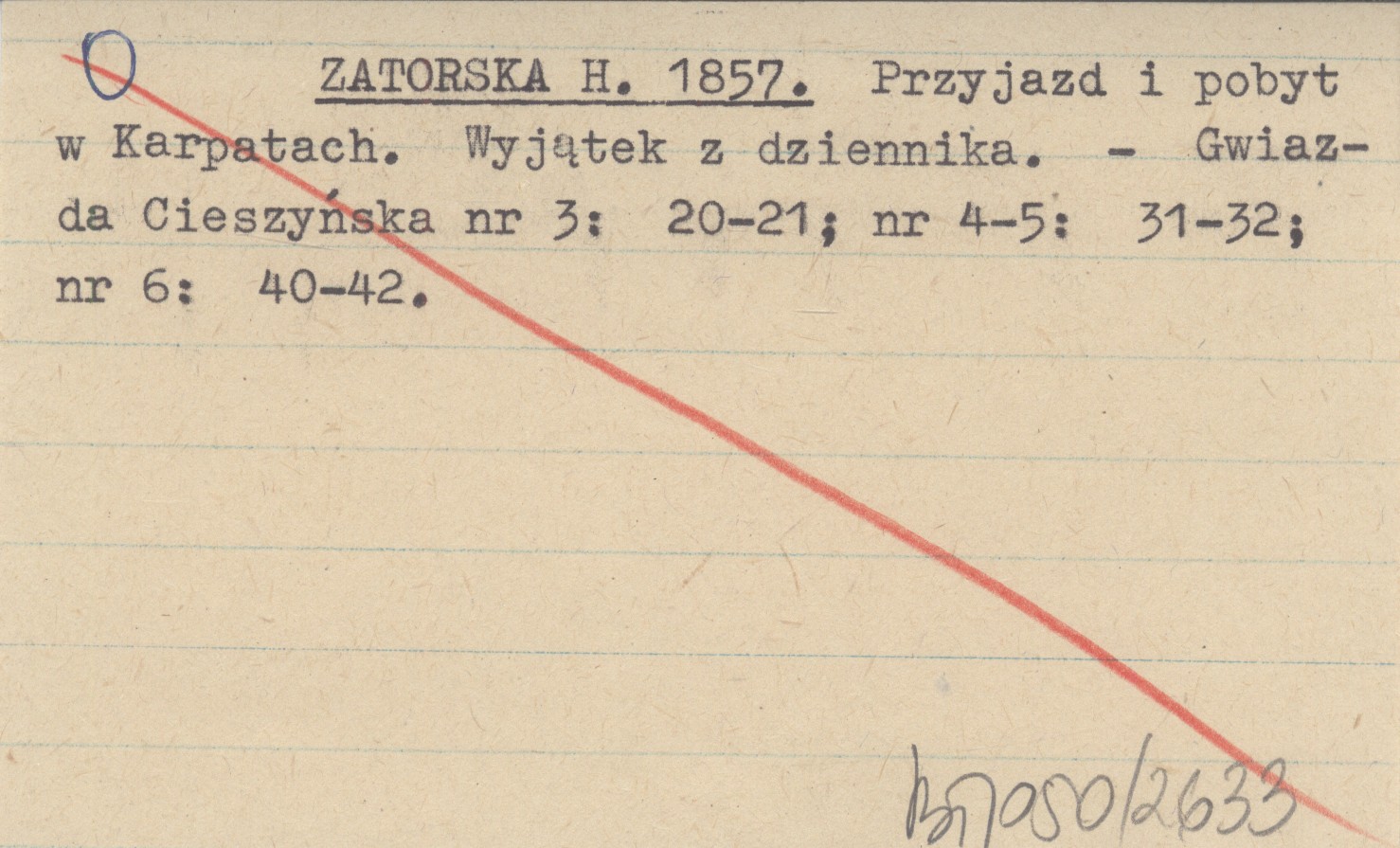 ZATORSKA H. 1857 Przyjazd i pobyt w Karpatach. Wyjątek z dziennika.