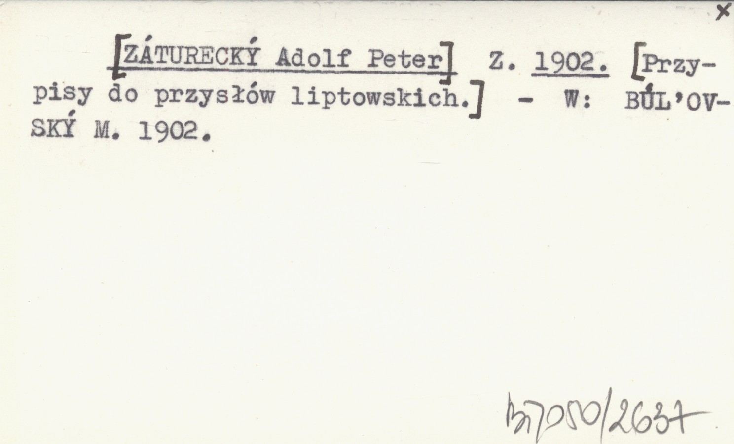 Z. [ZÁTURECKĘ Adolf Peter] 1902 [Przypisy do przysłów liptowskich.]