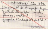 ZÁTURECKÝ Ján 1899 [Przyczynki do etnografii liptowskich Słowaków: wesele, flisacy, szałas.]