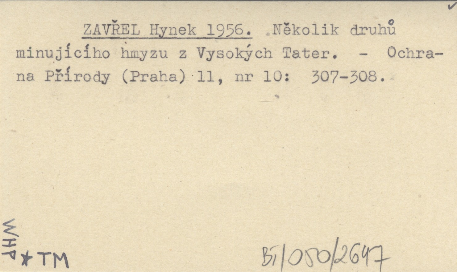 ZAVŘEL Hynek 1956 Několik druhů minujícího hmyzu v Vysokých Tater.