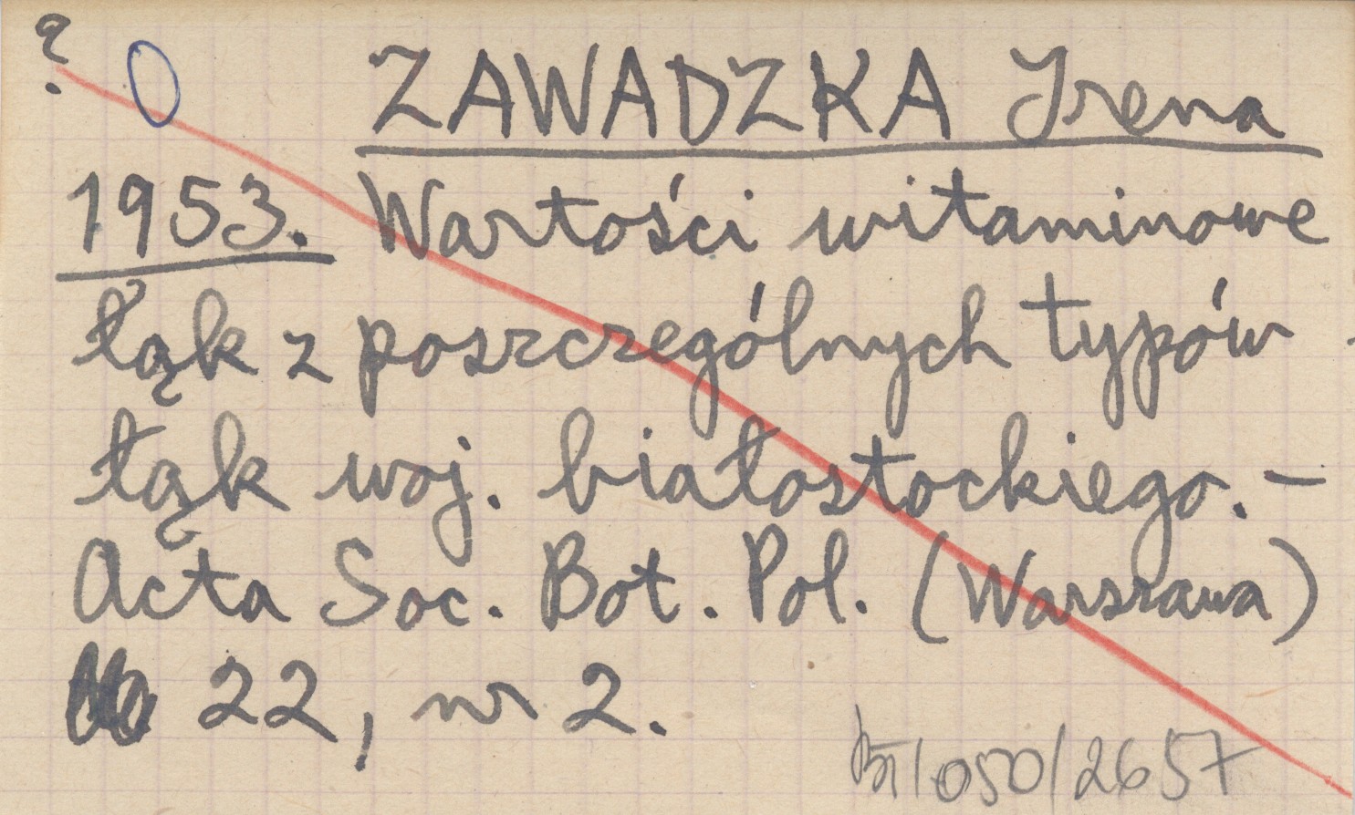 ZAWADZKA Irena 1953 Wartości witaminowe łąk z poszczególnych typów łąk woj. białostockiego.