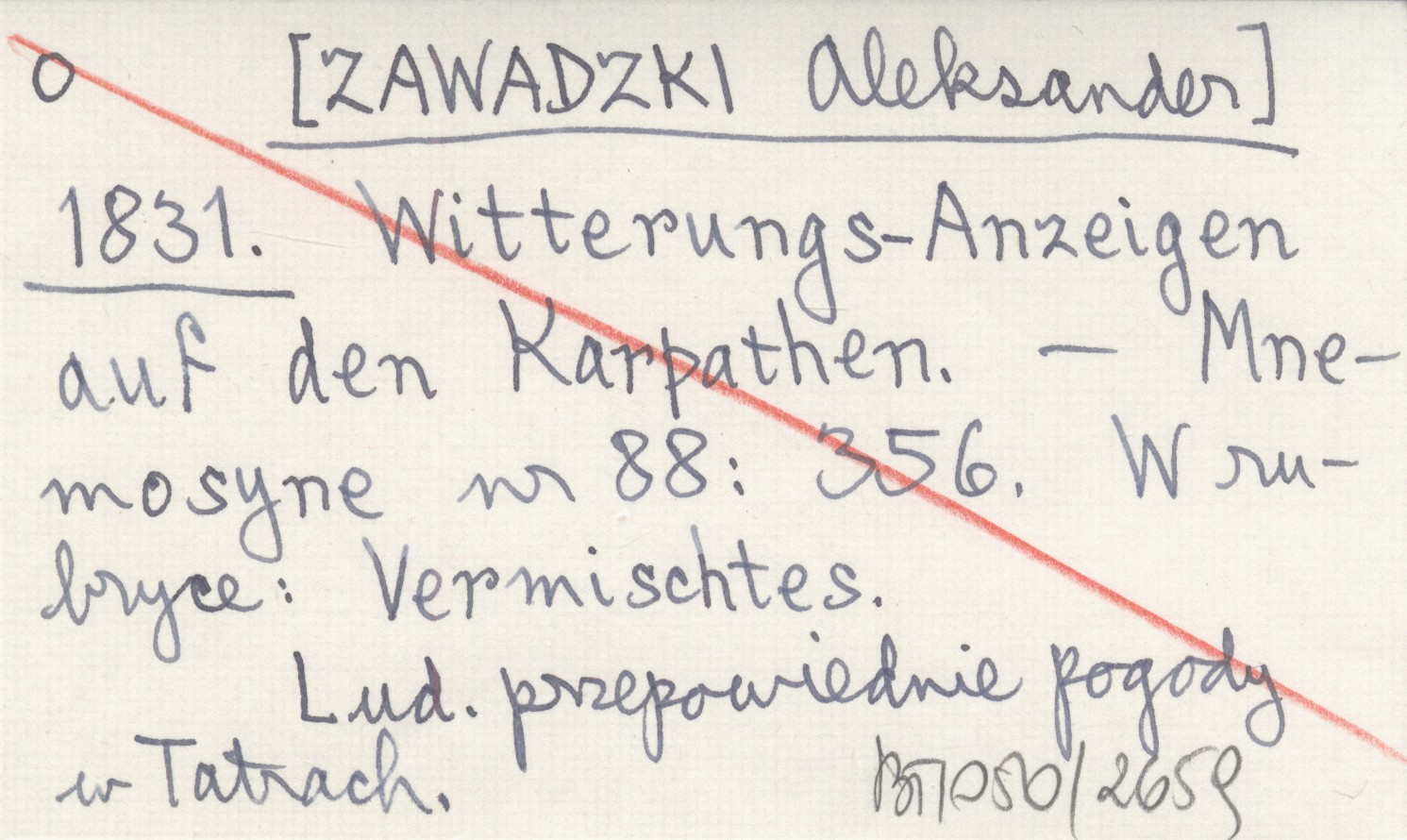 [ZAWADZKI Aleksander] 1831 Witterungs-Anzeigen auf den Karpathen.
