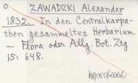 ZAWADZKI Alexander 1832 In den Centralkarpathen gesammeltes Herbarium.