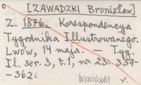 Z. [ZAWADZKI Bronisław] 1876 Korespondencya Tygodnika Illustrowanego. Lwów, 14 maja.