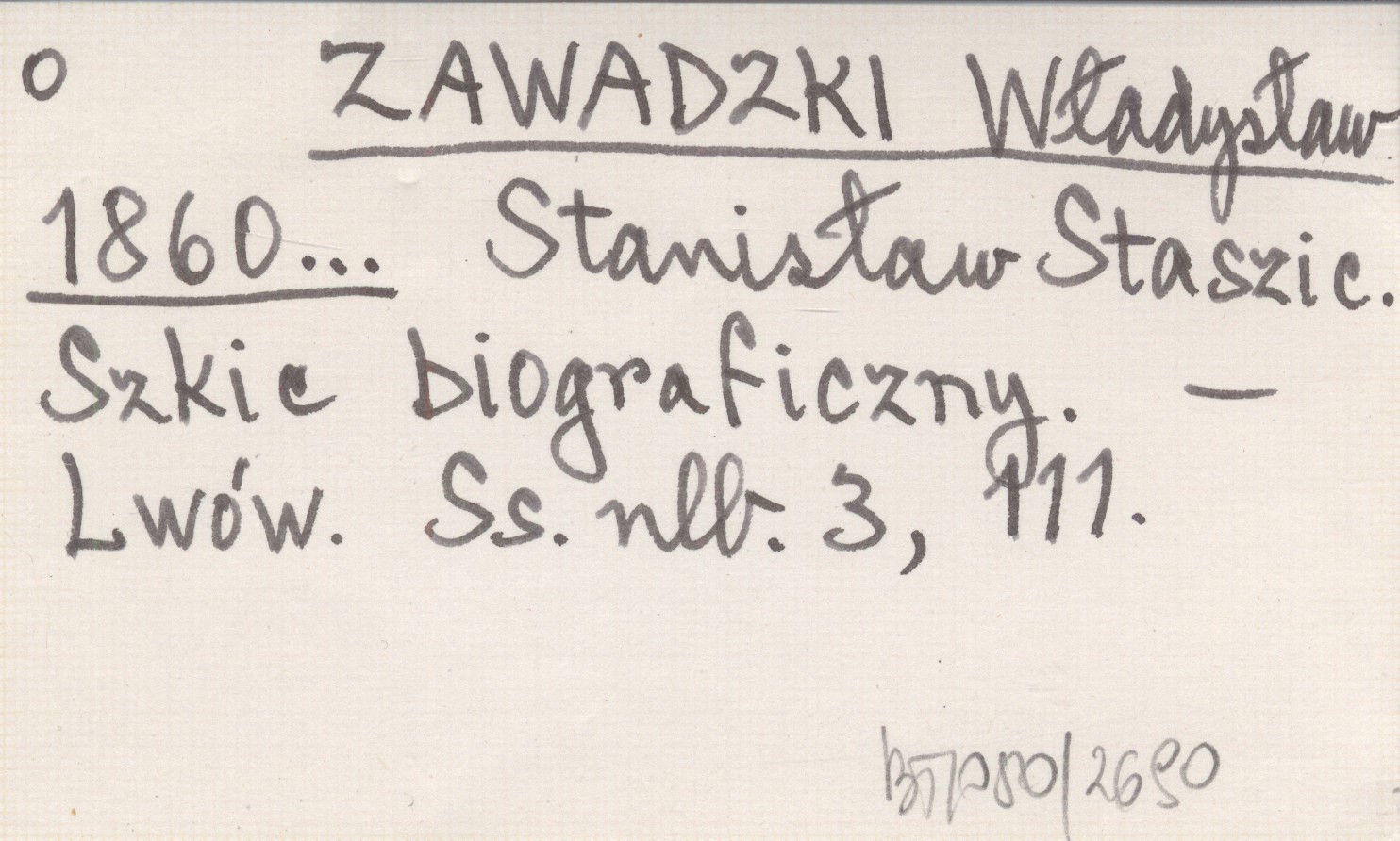 ZAWADZKI Władysław 1860... Stanisław Staszic. Szkic biograficzny.