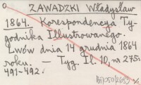 ZAWADZKI Władysław 1864 Korespondencya Tygodnika Illustrowanego. Lwów dnia 14 grudnia 1864 roku.