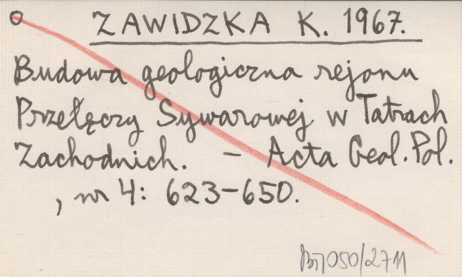 ZAWIDZKA K. 1967 Budowa geologiczna rejonu Przełęczy Sywarowej w Tatrach Zachodnich.
