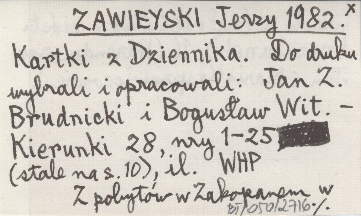 ZAWIEYSKI Jerzy 1982 Kartki z Dziennika. Do druku wybrali i opracowali: Jan Z. Brudnicki i Bogusław Wit.
