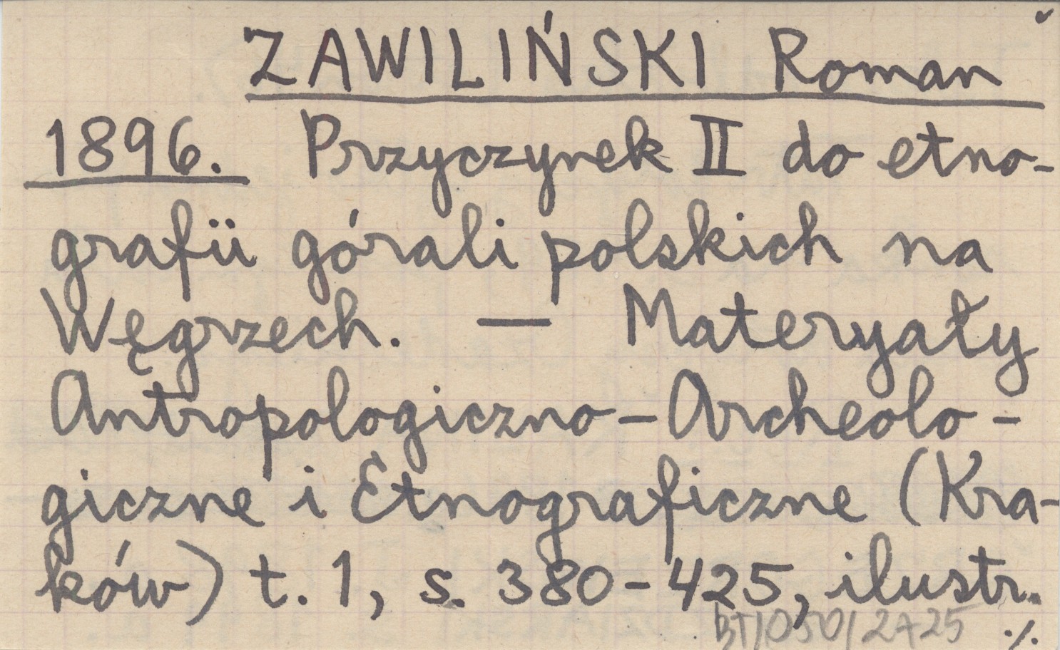 ZAWILIŃSKI Roman 1896 Przyczynek II do etnografii górali polskich na Węgrzech.
