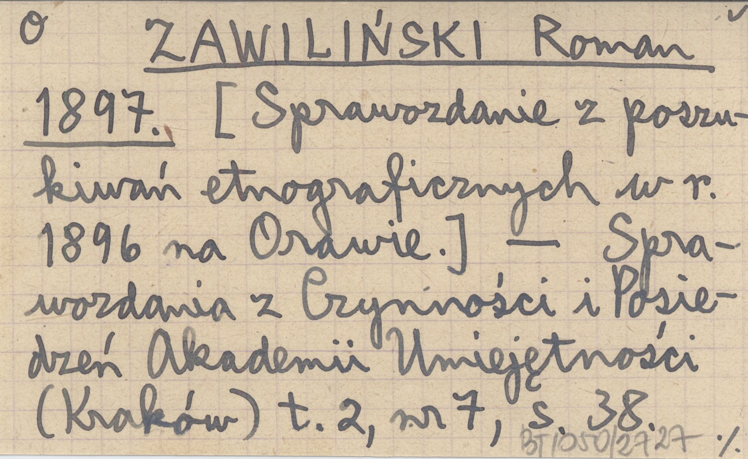 ZAWILIŃSKI Roman 1897 [Sprawozdanie z poszukiwań etnograficznych w r. 1896 na Orawie.]