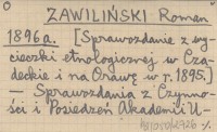 ZAWILIŃSKI Roman 1897 [Sprawozdanie z poszukiwań etnograficznych w r. 1896 na Orawie.]