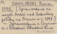 ZAWILIŃSKI Roman 1898 [Sprawozdanie ze swych badań nad ludnością polską na Orawie w r. 1897.]