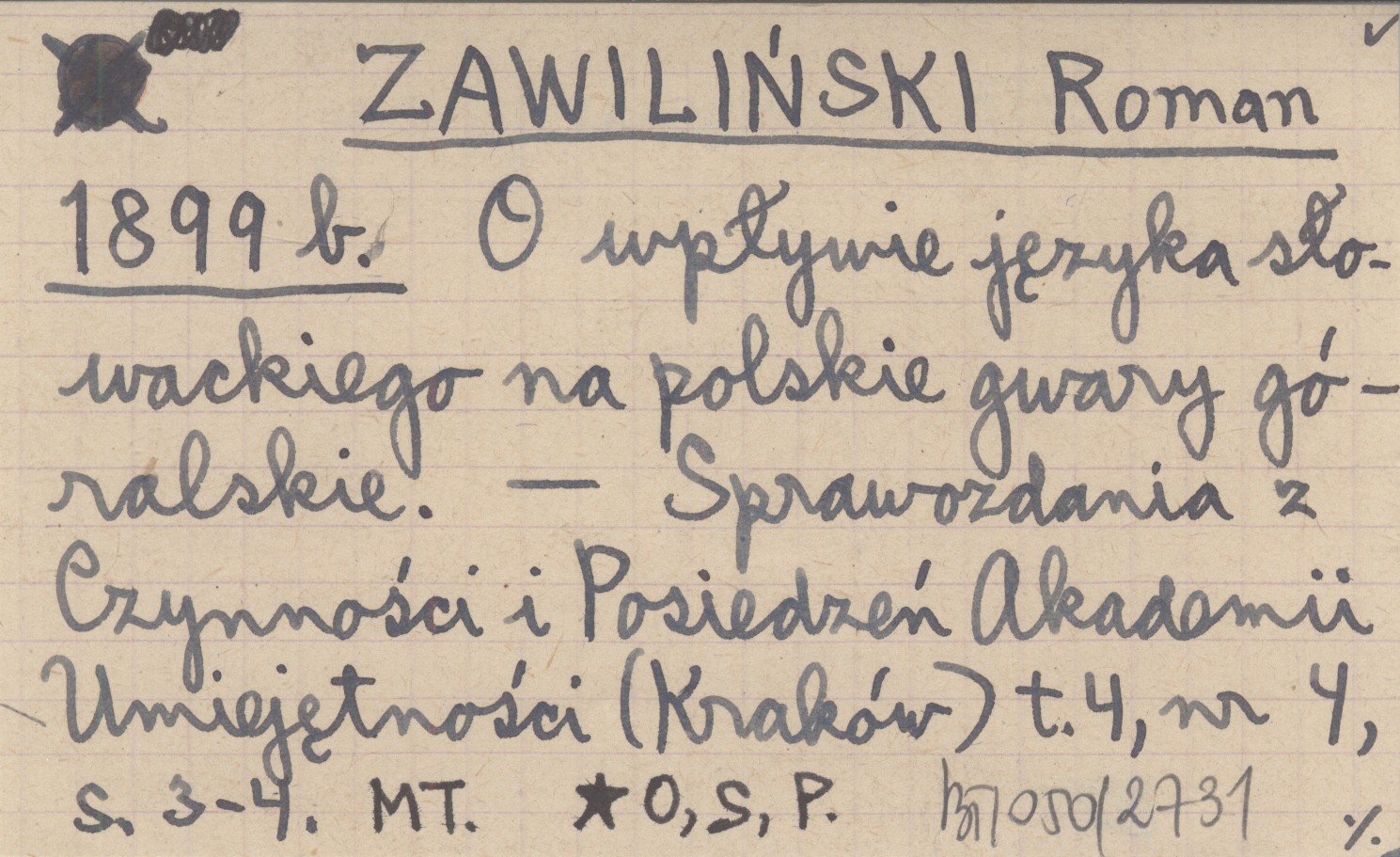 ZAWILIŃSKI Roman 1899 b O wpływie języka słowackiego na polskie gwary góralskie.