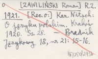 R. Z. [ZAWILIŃSKI Roman] 1921 [Rec. o:] Kaz. Nitsch: O języku polskim. Kraków 1920, 28 s.