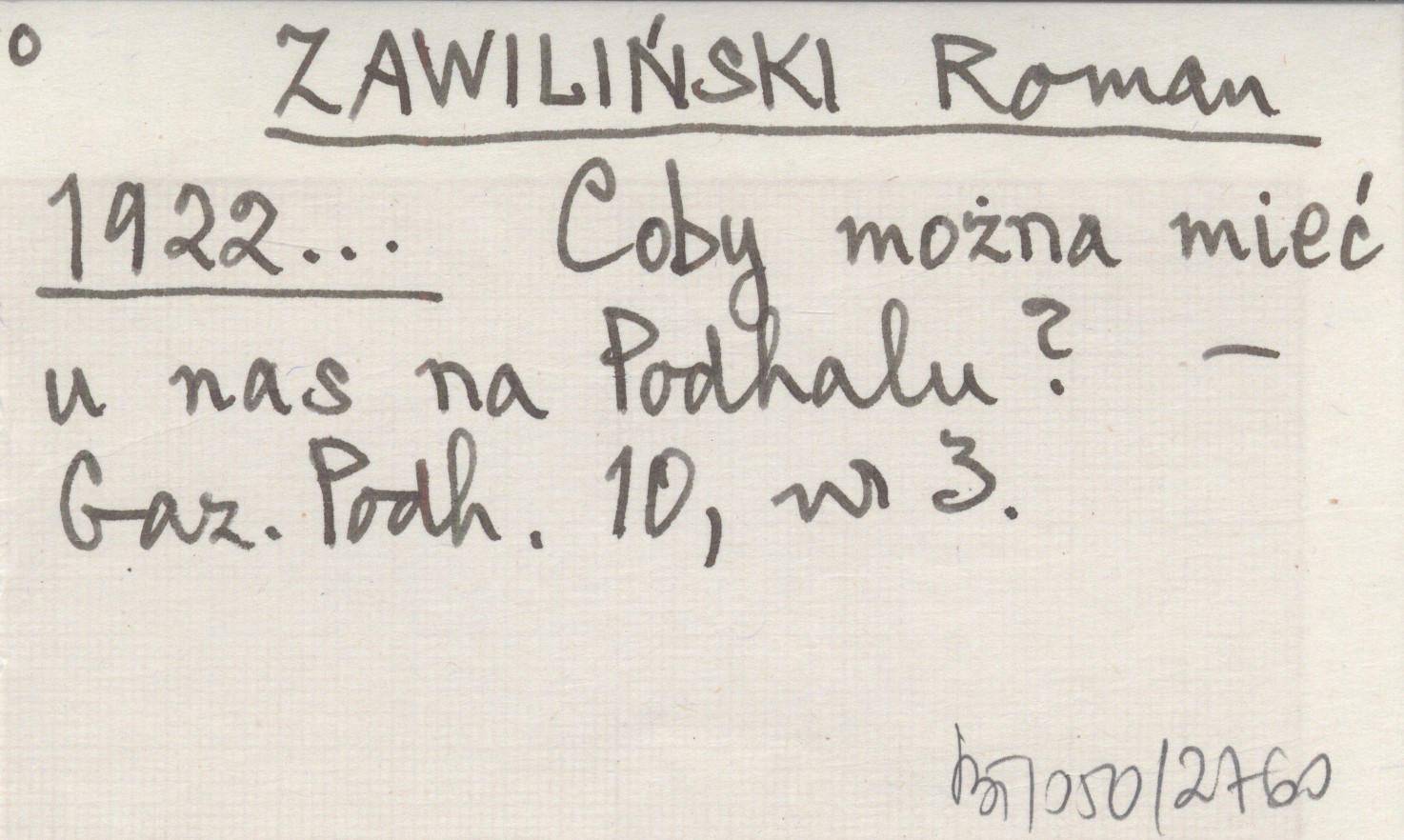ZAWILIŃSKI Roman 1922... Coby można mieć u nas na Podhalu?