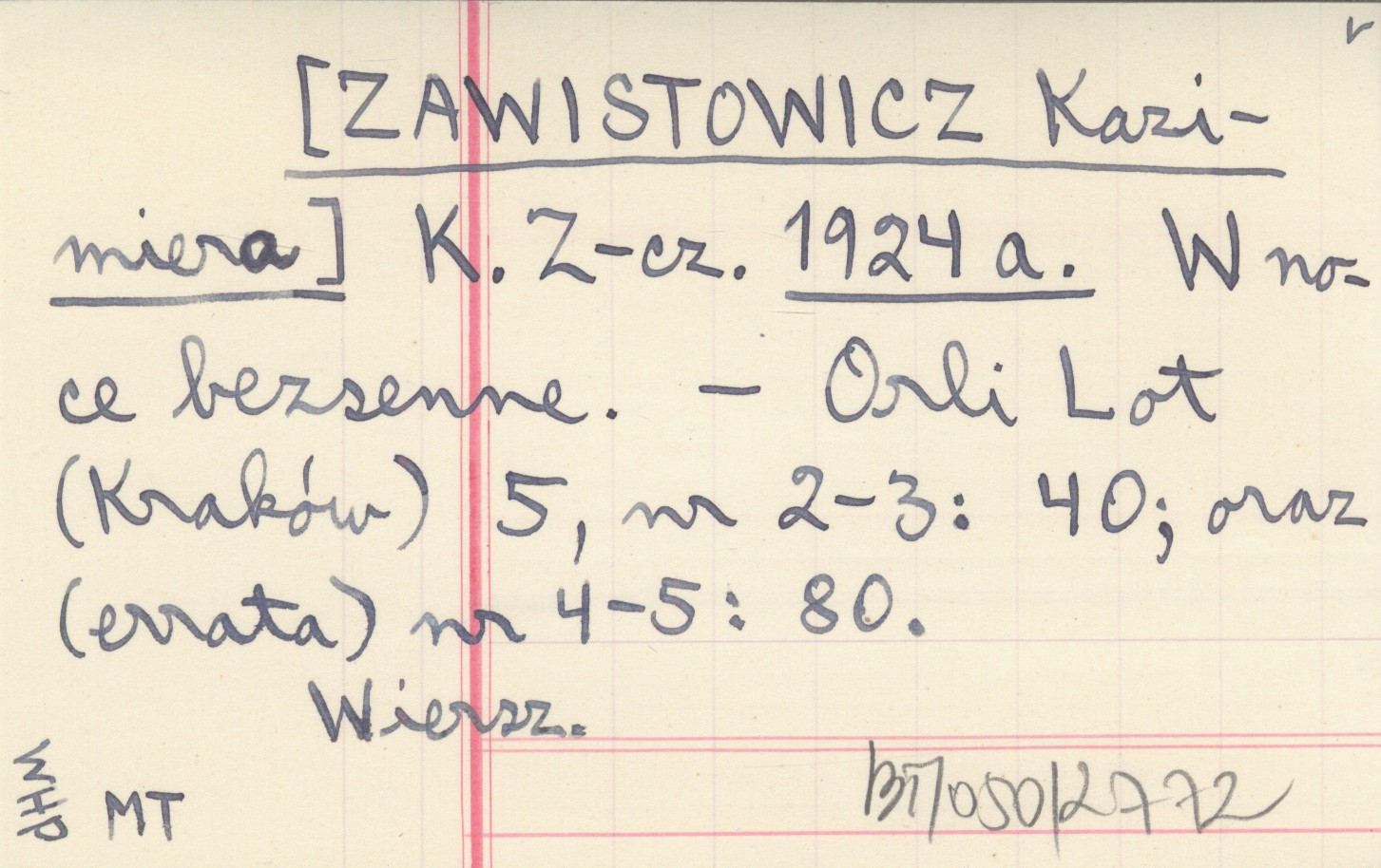 Orli Lot (Kraków) , 5, nr 2-3: 40 ; nr 4-5: 80 (err.). Wiersz.