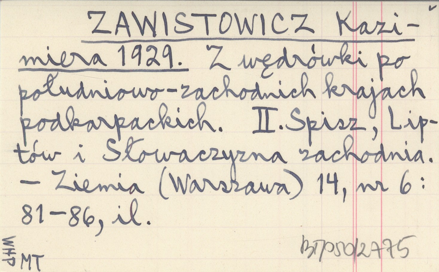 ZAWISTOWICZ Kazimiera 1929 Z wędrówki po południowo-zachodnich krajach podkarpackich. II. Spisz, Liptów i Słowaczyzna zachodnia.